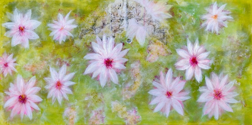 Ich verwende hier Aura Soma Equilibrium und mische dies in die Malfarbe.