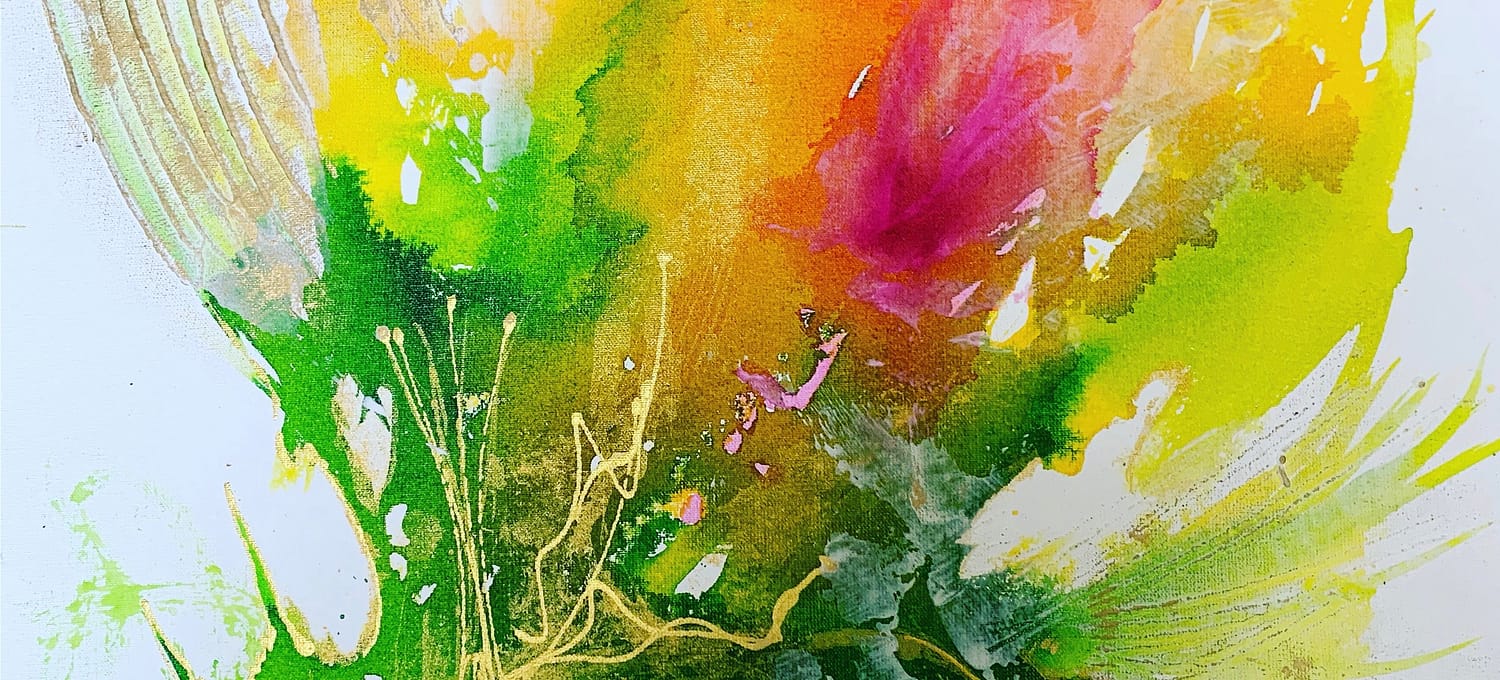 Wenn ich male, spüre ich tatsächlich, wie die pure Lebensfreude durch mich hindurch fließt. „Vogelwild glückselig“, im absoluten Flow, nur im Moment, im Sein. Davon kann ich gar nicht mehr lassen. Genau diesen Flow meine ich, wenn ich sage, „Béatitude en toute présence“. Glückseligkeit in jeder Zelle, ganz meinem Vornamen entsprechend.